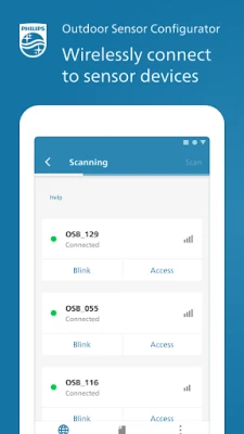 The Philips outdoor sensor configurator mobile App provides an installer with all necessary means to commission and configure the Philips Outdoor Multi Sensor node, installed at the bottom-bracket of a Zhaga D4- luminaire
