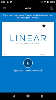 The Linear Access Control App is designed to operate on an Android Phone, and in conjunction with electronic access control systems making use of Linear mobile-ready readers, allows the Phone to be the access credential. This app allows a system user to download, manage and use their Linear mobile access credentials in an intuitive and practical manner. With the Linear Access Control App enabled and valid Linear Mobile Access Credentials loaded, a Phone user may now enter into any authorized access system.