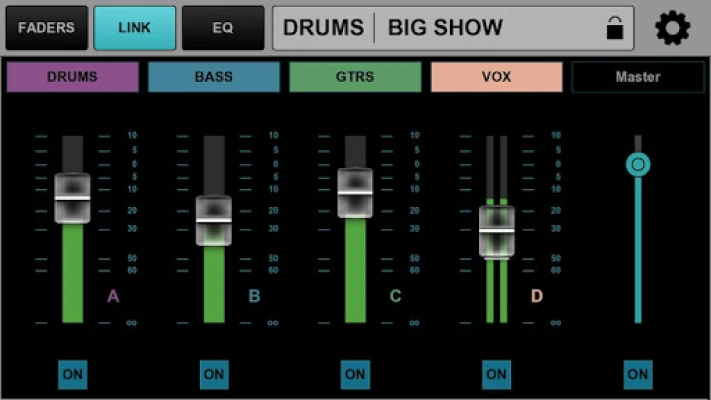 Musicians can adjust input levels, mute, pan, apply post-mix EQ and link channels to custom single fader groups, without affecting the band or FOH sound.