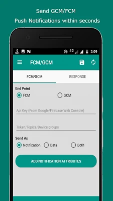 • Send Google Cloud Messaging (GCM) downstream messages i.e. Push Notifications to your registered devices with Firebase Cloud Messaging (FCM) endpoint support.